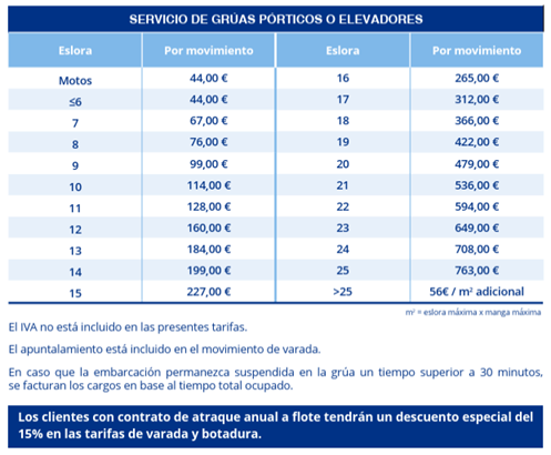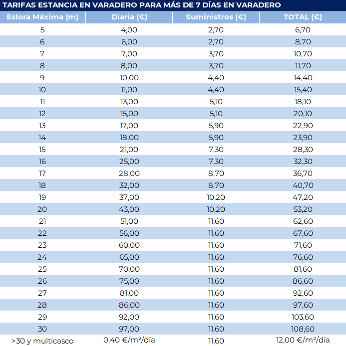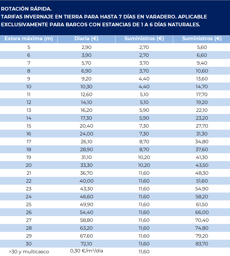 Durante la próxima parada biológica, aprovecha nuestras tarifas especiales en varadero para estancias de 1 a 6 días y hasta 7 días de invernaje en tierra.